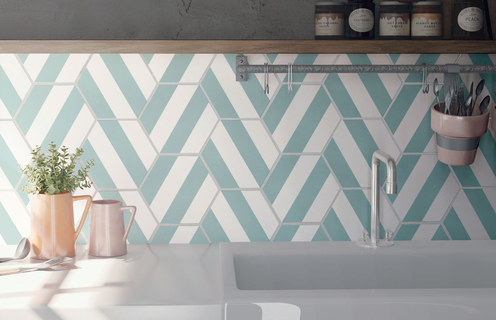 Just like Bondi Arabesque, The Bondi Fan is another shape that adds an attractive look to your kitchen& other part of your home. In current times these Bondi series is getting popular for kitchen décor. This series have Fun, Cheerful colours is being used in variety of spaces from feature walls in living rooms, splashback in kitchens to adding colour in bathroom. These white body tiles in 7-different colours are an ideal choice for your kitchen, as well as your bathroom. Moreover, this series comes in 134mm x 150mm size and it’s Made-in-Spain. These timeless tiles have water absorption capacity along with flexion, thermal-shock, crack and frost resistance which adds to its unique proposition. Hence Bondi tiles are the first choice for kitchen décor.