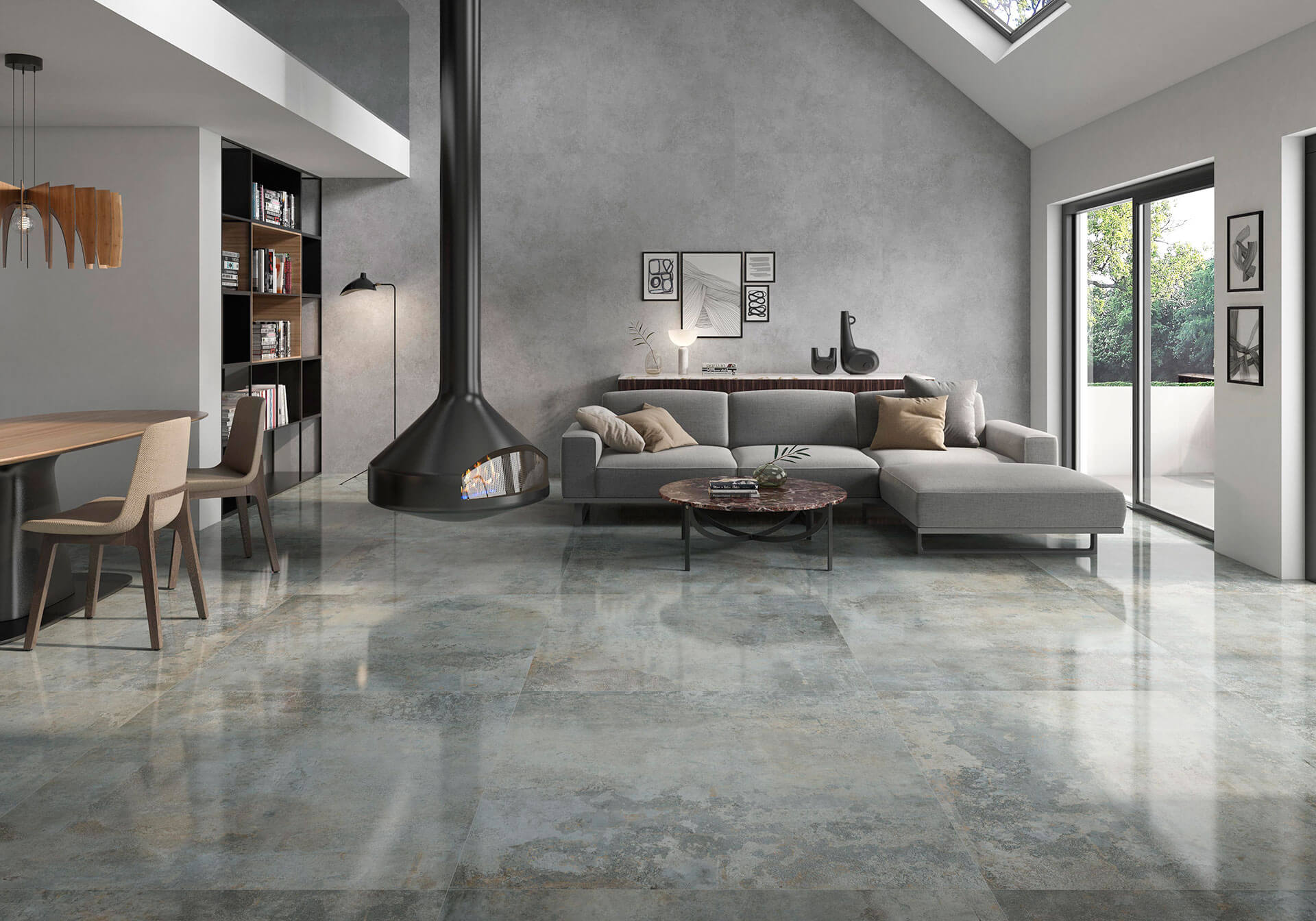 Patina-engineered porcelain transforms interiors into living landscapes, surfaces that mature alongside the people who inhabit them.