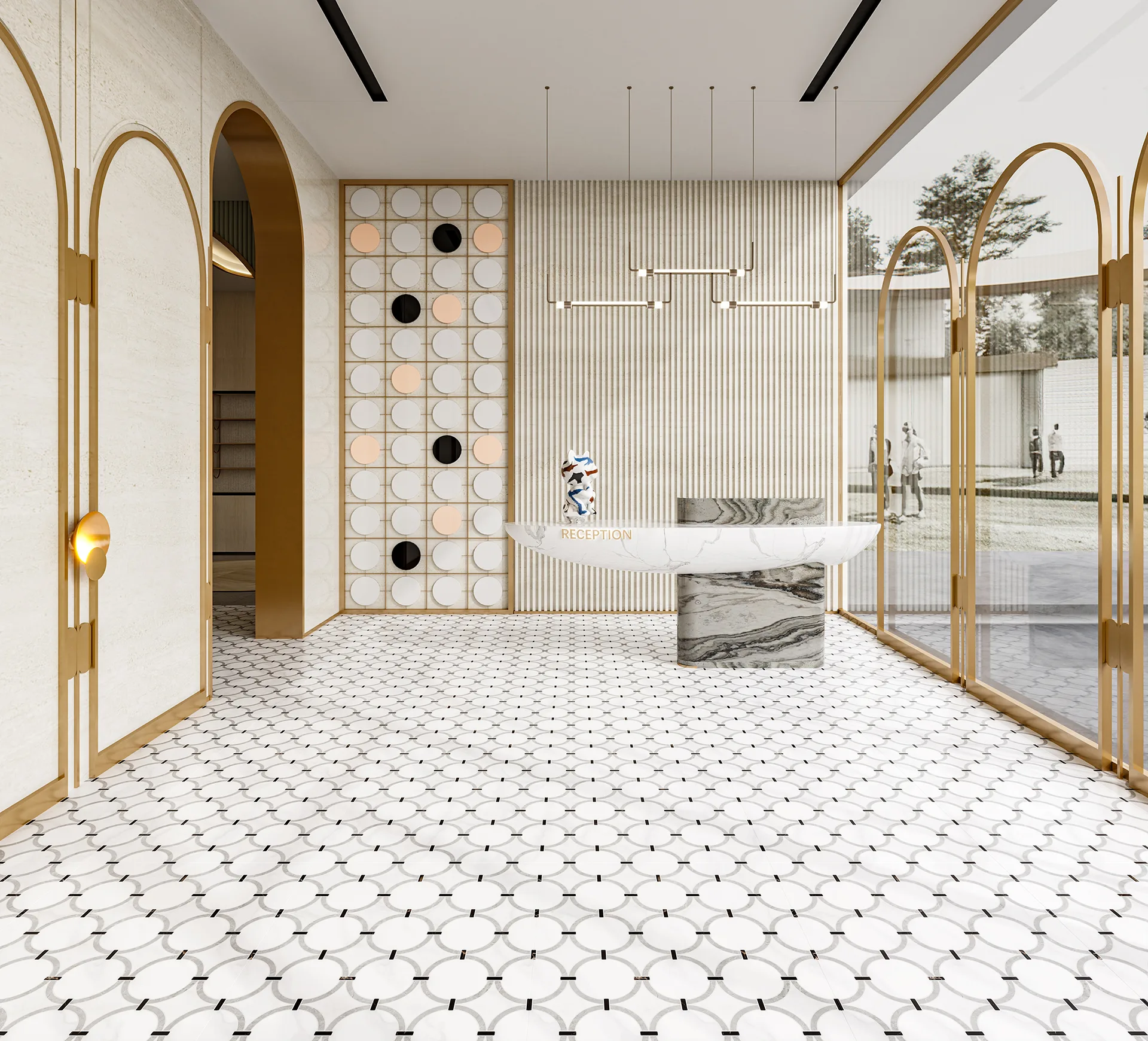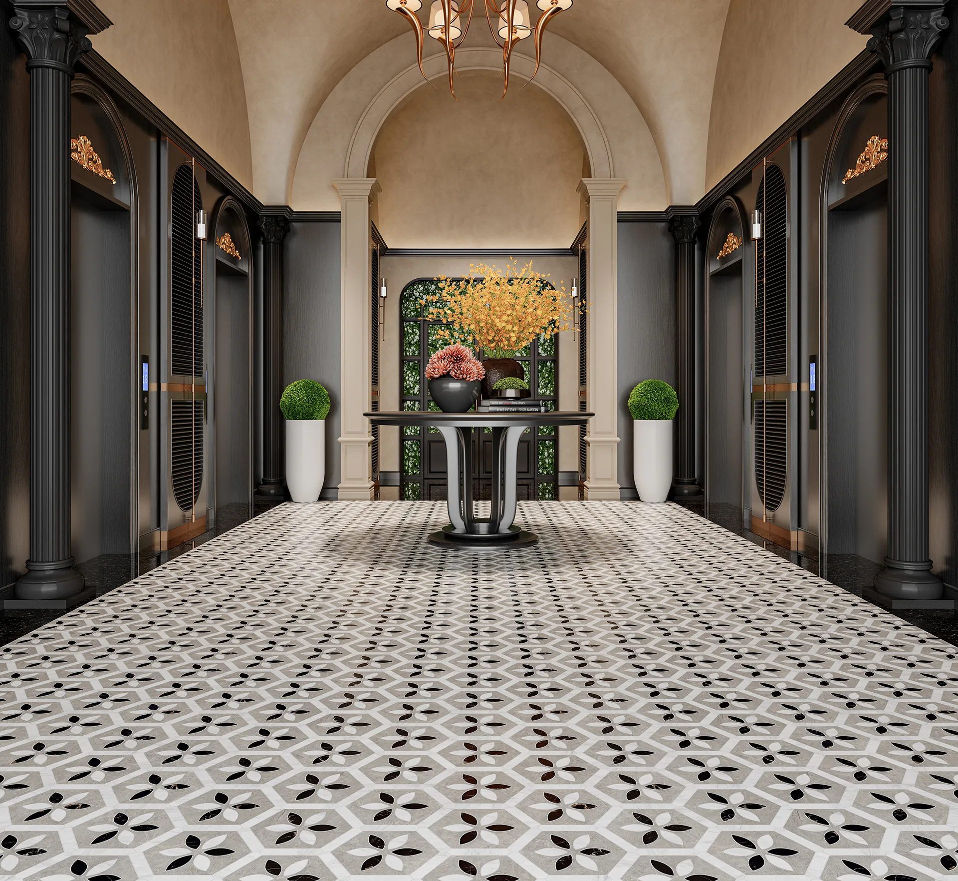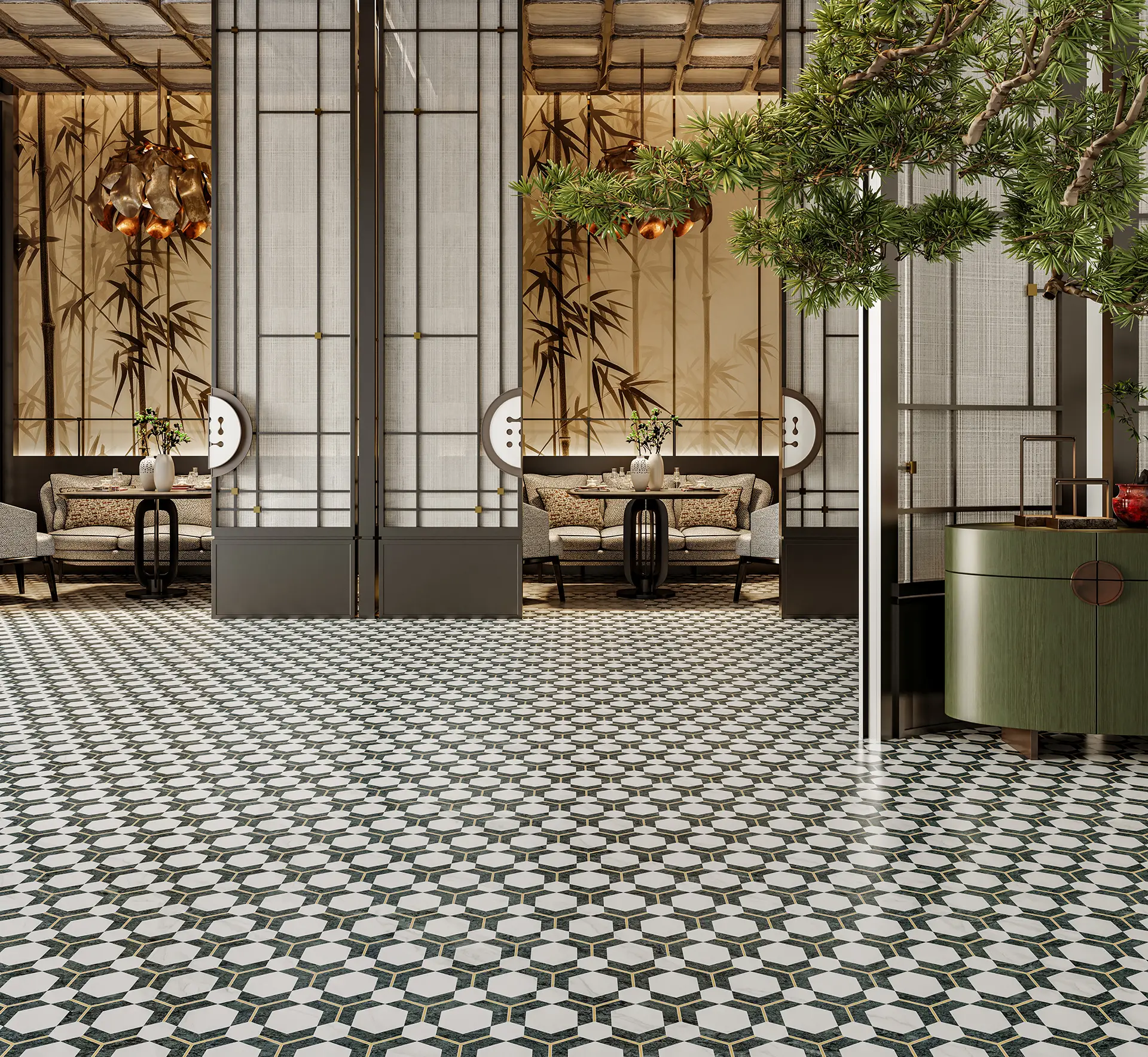 Where pattern meets open space. The 9051-9054 Series blends rich marble textures with a seamless, interlocking design that hides the edges of each tile.